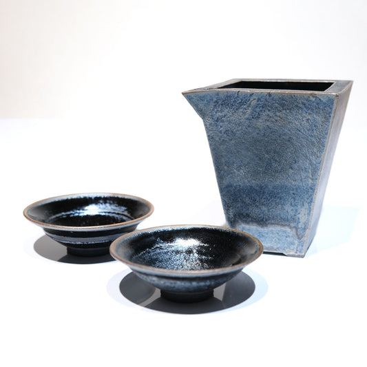 山下陶房 山下秀樹 銀化天目(ぎんかてんもく) 酒器揃 角片口 (大)・盃 2個