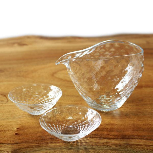 glasscalico グラスキャリコ プリズム 雅(みやび)冷酒器セット (片口・ぐい呑 2個) ハンドメイド ガラス酒器
