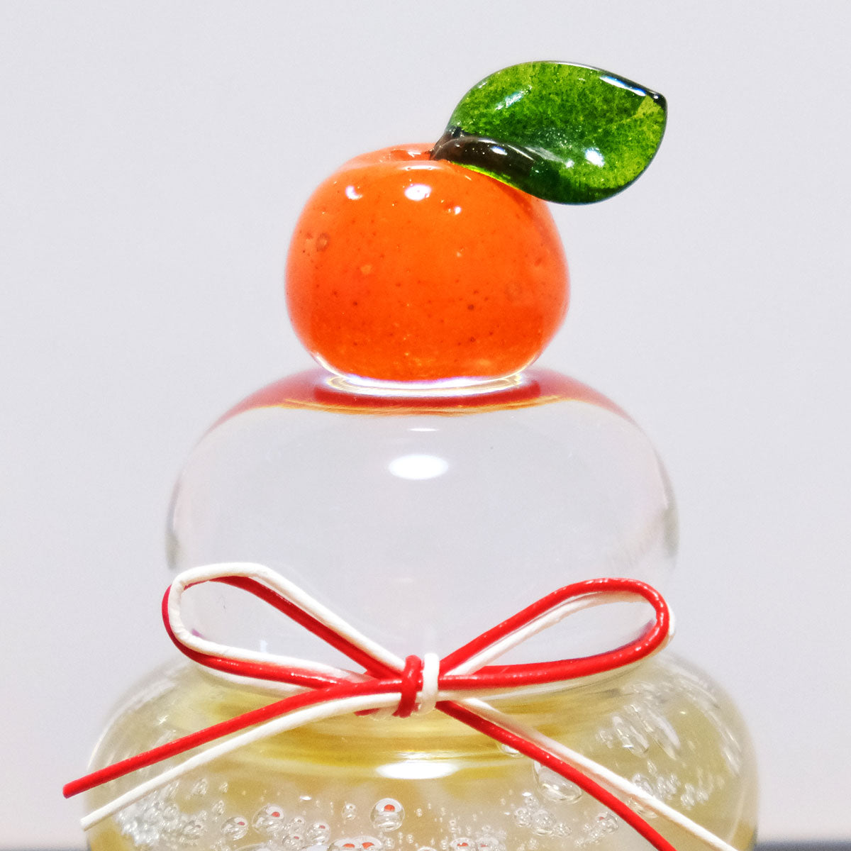 透き通ったガラスのお餅に、少し大きめの橙と水引がついて本格的でおしゃれな仕上がり。