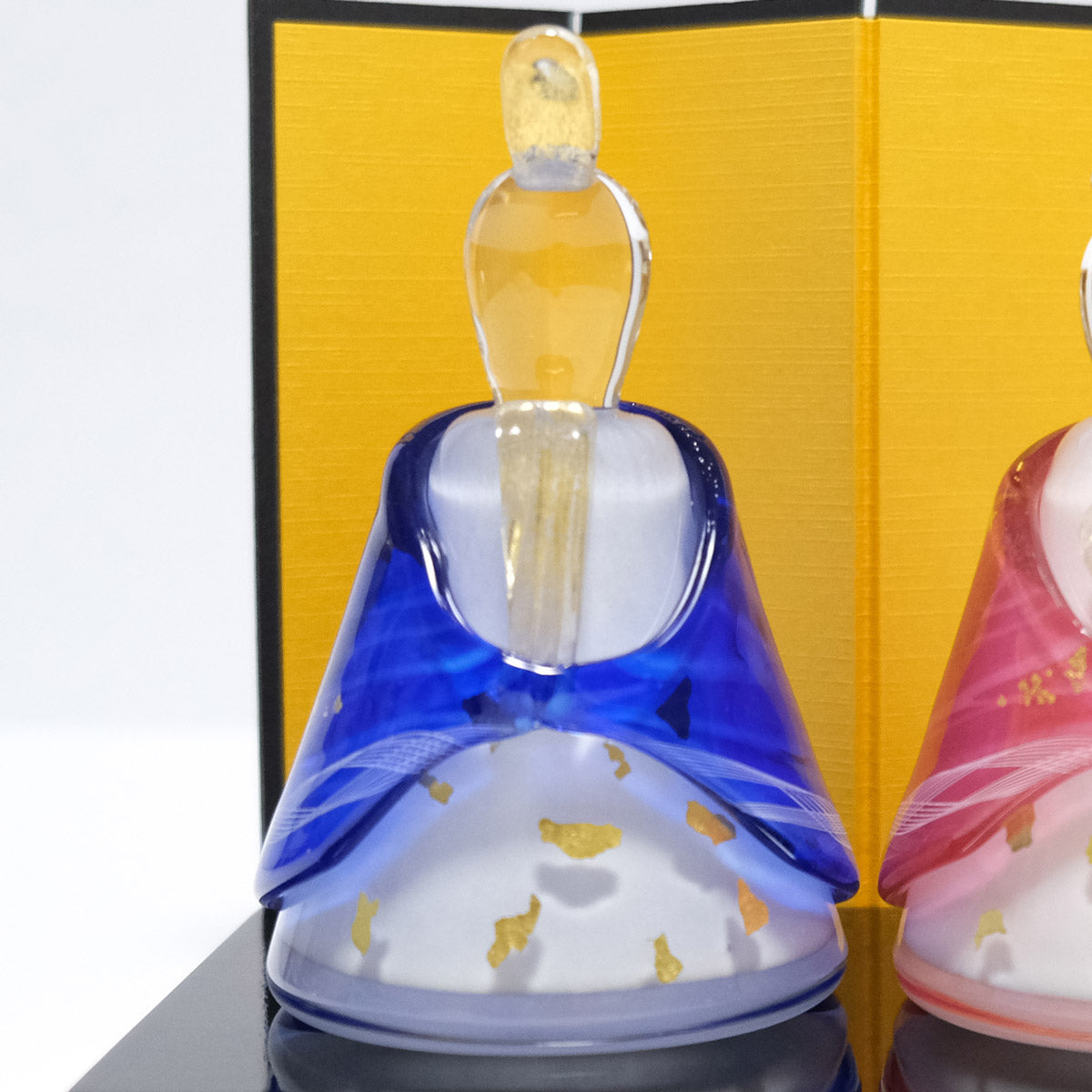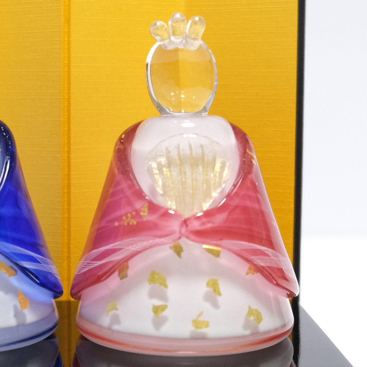 あざやかな色合いが春の訪れを感じさせる、かわいらしいガラスのお雛様。