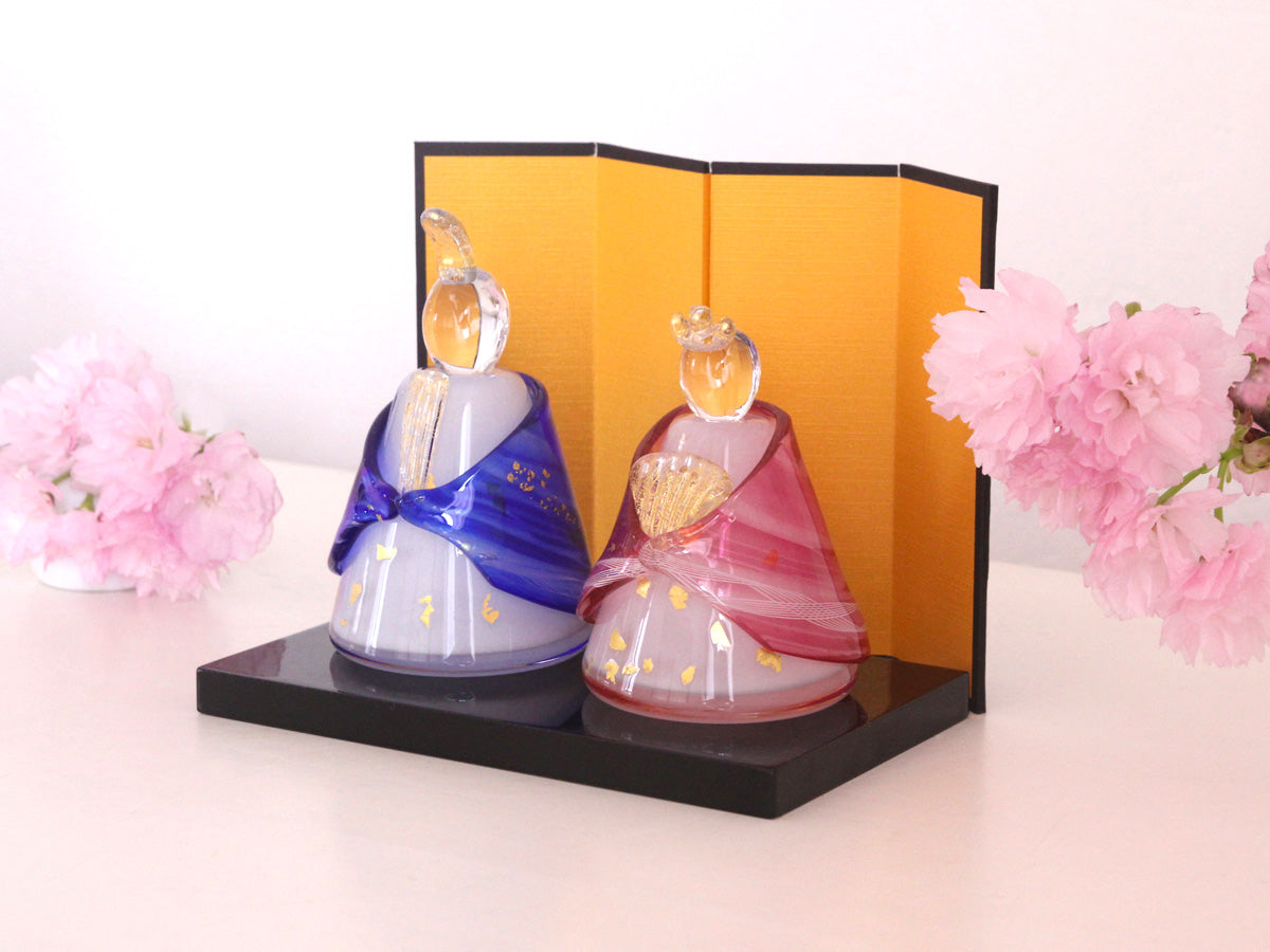 ガラスの雛飾り 春の風 (瑠璃色・紅色) 桐箱入 FIORETTO フィオレット 高野仰 ハンドメイド ガラスアート 雛人形 ひな人形 おひなさま 桃の節句 オブジェ コンパクト